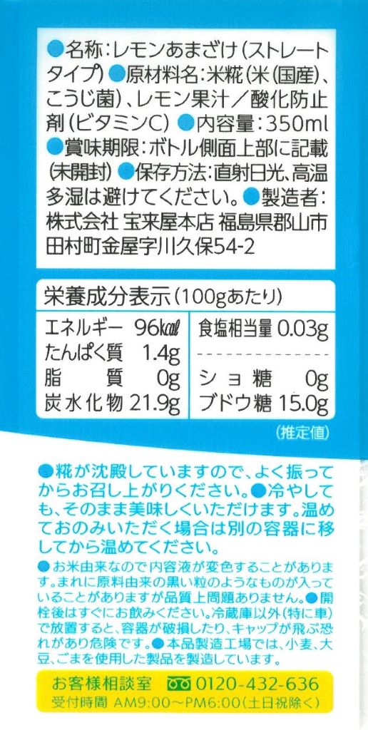 米糀100%で作ったあま酒に、まろやかな酸味が特徴のシチリア産レモンをブレンド。すっきり爽やかな味に仕上げました。