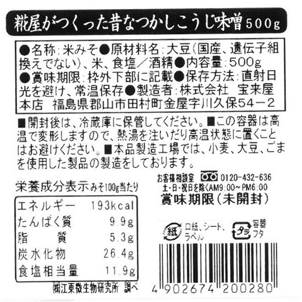 | 商品名 | 糀屋がつくった昔なつかしこうじ味噌(500g) |